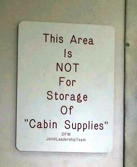 And then it started happening again. For instance, here’s a picture at right I snapped on a jet bridge at the Dallas / Fort Worth Airport (DFW) this month. How funny, at least to me, that the layers of airport security I experienced culminated in this unintentionally vague message set a few feet before boarding the plane.