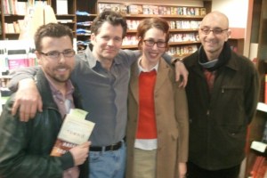 Andre Dubus III is Dreamy (second from left in photo). Well, that’s what we all thought, in our own ways. We sat enraptured by his tale, his vocal style, and his presence on Thursday, 17 February 2012, as he read from his “Townie: a Memoir” at Boswell Books. He also tamed the oft-cagey Q&A section of an author reading into a refreshing back and forth that highlighted the best of people’s comments and held any cringe-inducing, meandering audience animadversions and anecdotes at bay.